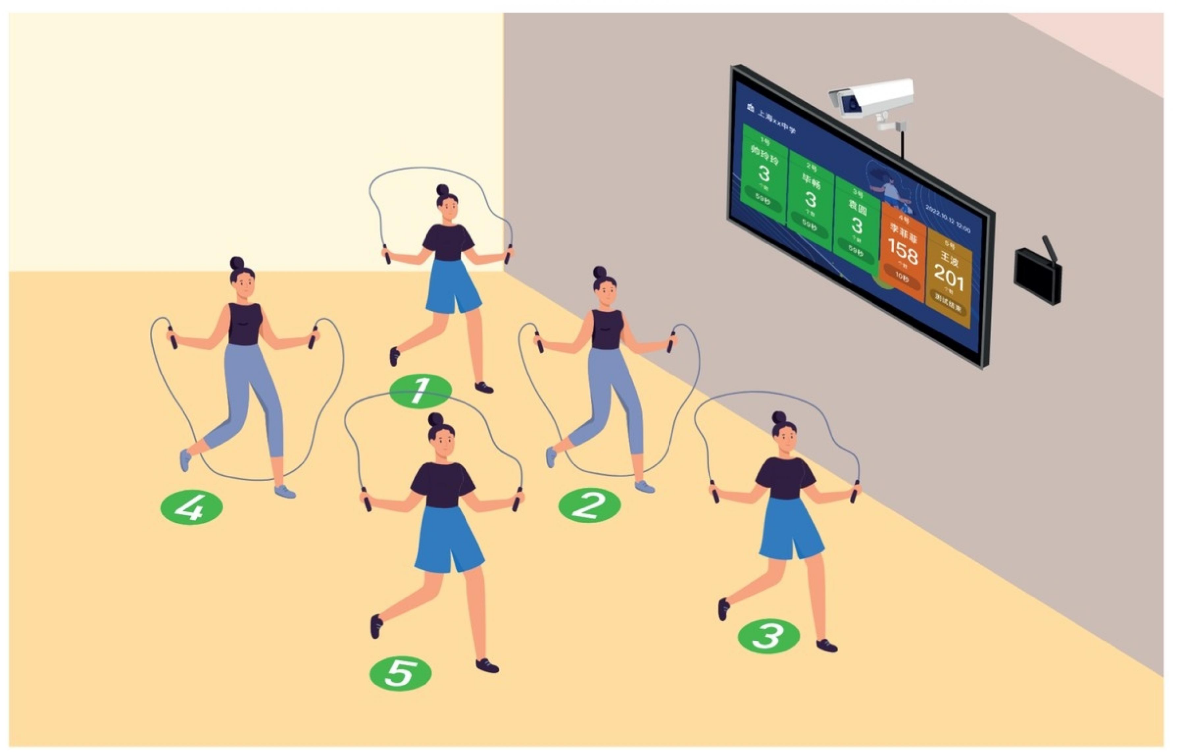 1、 支持5人同時跳繩,隨來隨測,靈活高效