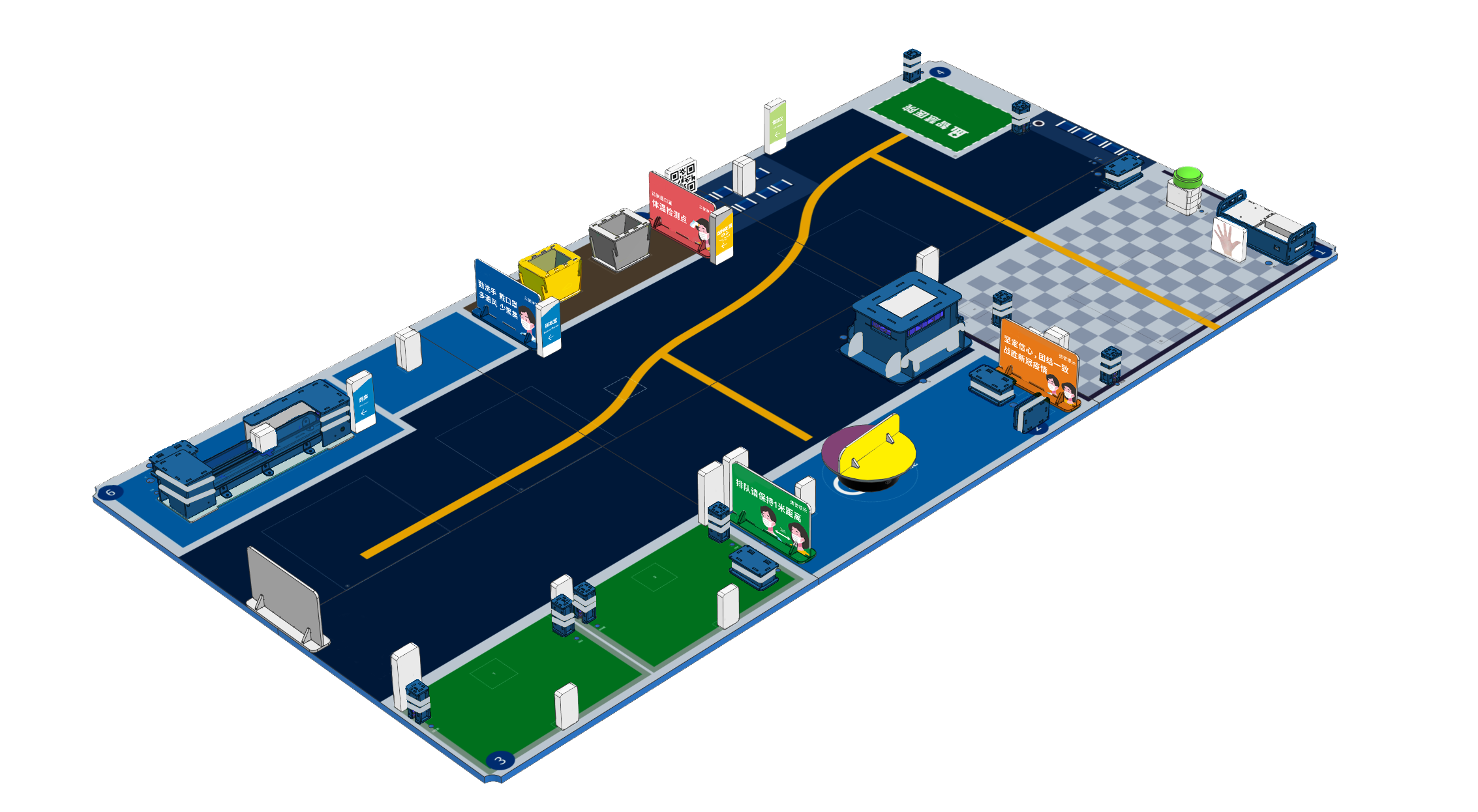 智慧醫院AI教育主題套件模擬真實醫院場景,可支持機器人完成垃圾清理、導診、送藥、檢測送樣、病房協助等任務。套件中的智慧大腦可同時監測控制所有傳感器、電機、顯示模塊等。AIOT系統實現了對智慧醫院場景全局監測,可進行藥品狀態、病人狀態、病房狀態的判定,自動判定各項任務完成情況并統計分數,智能播報,實現項目制教學評價和競賽分數統計。