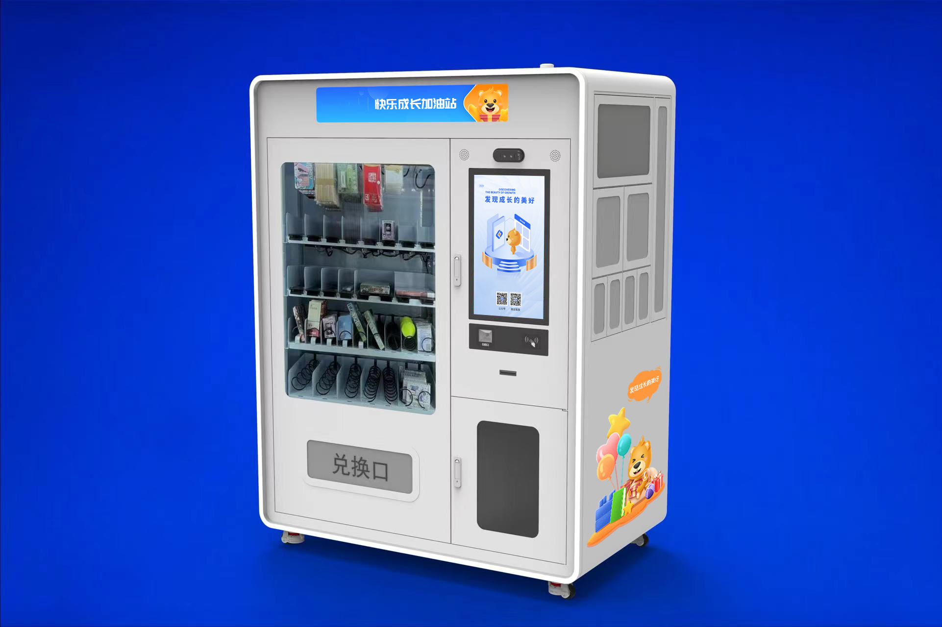 產品功能:校園文化、信息查詢、自助計分(一次性記分卡/可回收記分卡)、積分兌換(獎品實物自助兌換)、柜員補貨(貨道及獎品補貨管理)。