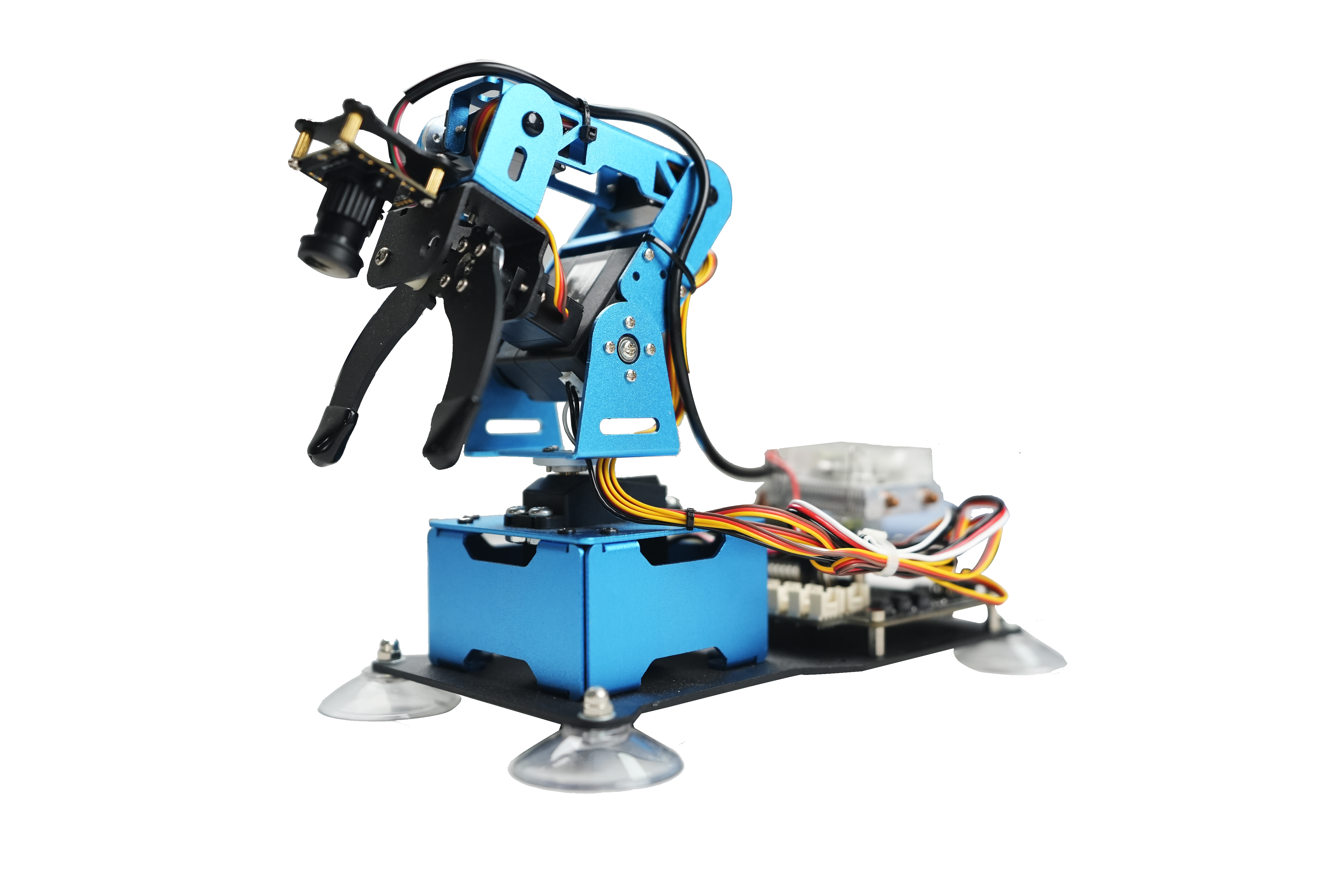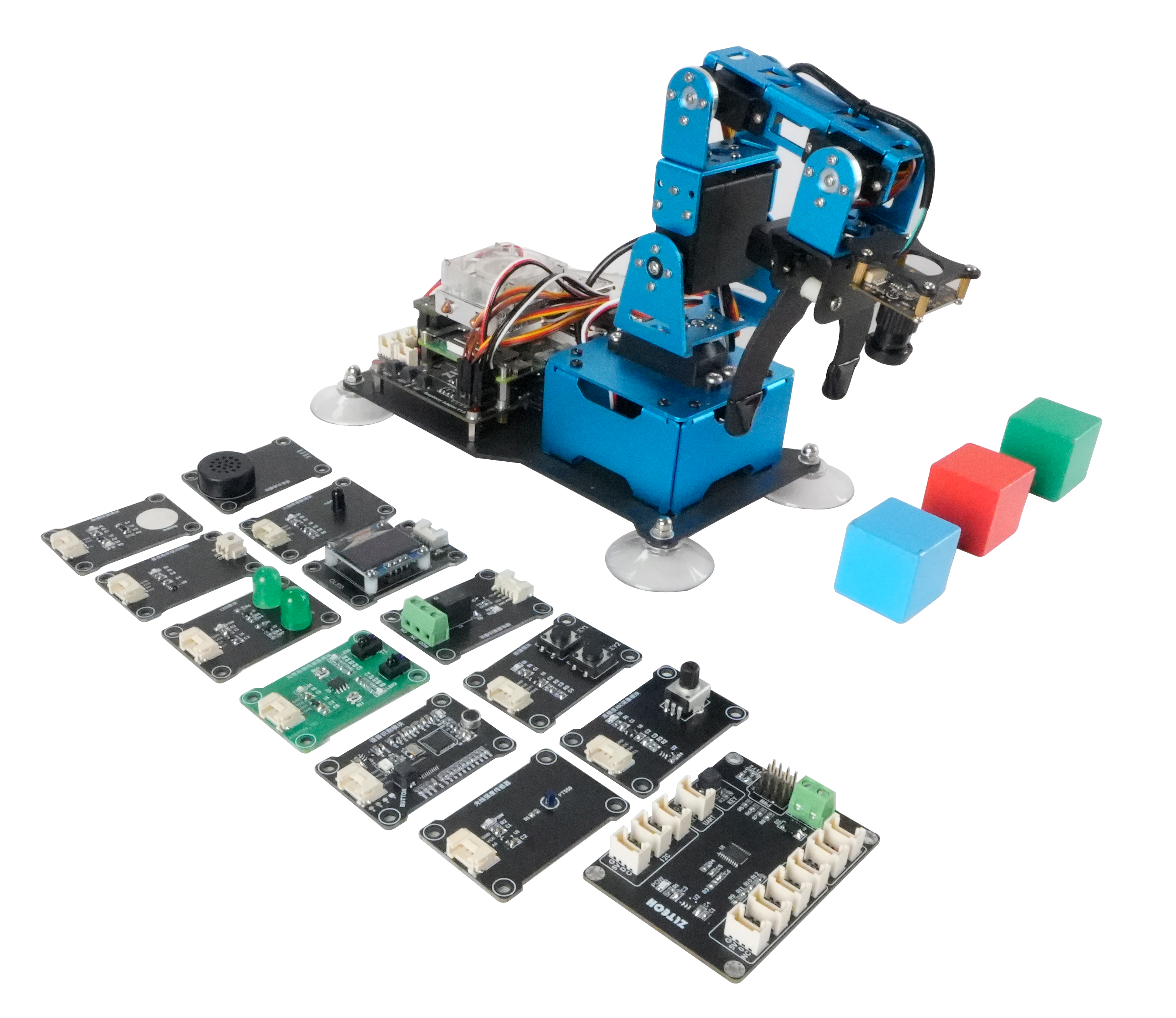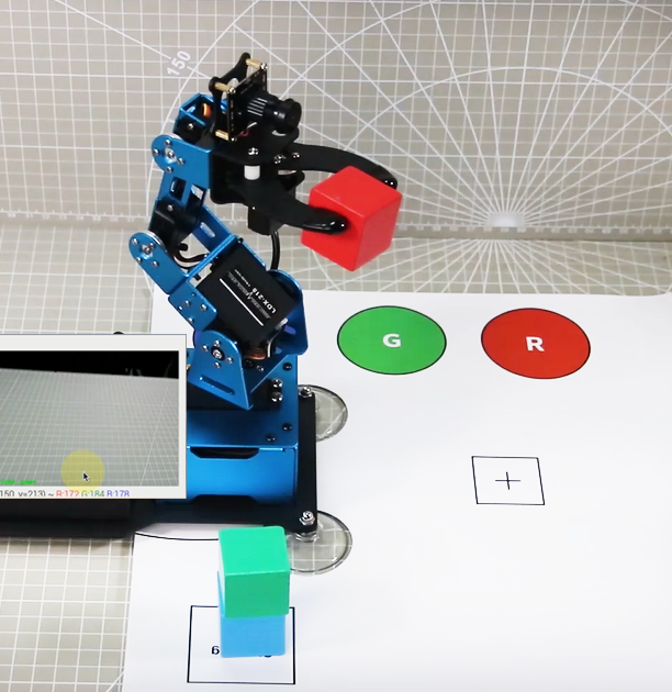 通過構(gòu)建場景與(3)-(7)中AI視覺、AI語音、機器人運動學(xué)、ROS激光雷達、全系列傳感模塊等相結(jié)構(gòu),實現(xiàn)場景、多傳感器器綜合實驗。例如,a)顏色分揀:通過對目標色塊進行顏色識別和坐標定位,可以輕松控制機械臂實現(xiàn)顏色識別、抓取、分揀。b)智能碼垛:通過對目標物品進行識別和定位,可以輕松實現(xiàn)色塊碼垛的功能。c)目標追蹤:通過對目標色塊進行視覺定位,利用機械臂的逆運動學(xué)算法,可以更好的對目標色塊進行捕捉和追蹤。