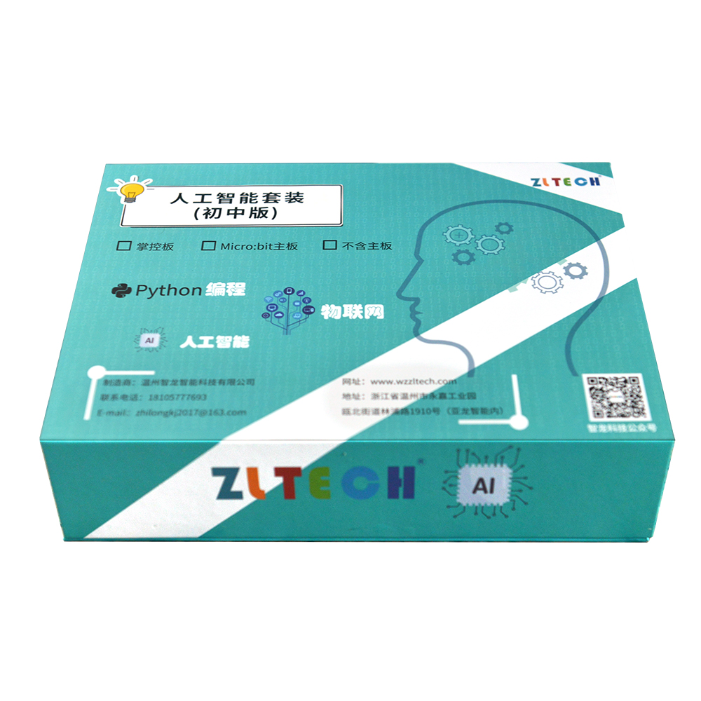 人工智能基礎(chǔ)套裝是智龍科技推出的一體化教學(xué)實(shí)驗(yàn)箱,以掌控板作為主控核心,集成了RGB彩燈、溫濕度、光線、人體紅外、煙霧、水滴等傳感器,再通過(guò)按鍵、舵機(jī)、直流風(fēng)扇以及拓展接口的聯(lián)動(dòng)來(lái)完成大多數(shù)的物聯(lián)網(wǎng)教學(xué)和案例原型開(kāi)發(fā),諸如RGB流水燈、環(huán)境光檢測(cè)、溫濕度計(jì)、煙霧報(bào)警、語(yǔ)音控制等案例案例開(kāi)發(fā)。