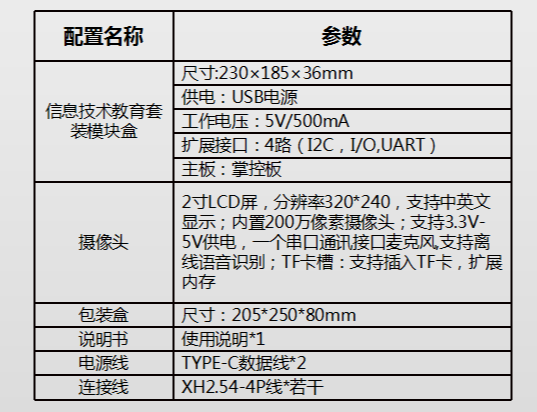 中小學信息技術教育套裝以掌控板主機模塊作為主板單元和傳感器單元組成,通過擴展接口,主板與傳感器單元連接成功,無需外接繁雜的線路,搭配一條TYPE-C數據線就可以實現圖形化編程及MicroPython語言編程,是一種配套中小學信息技術物聯網與人工智能,在人工智能技術、物聯網技術等應用領域有著十分重要意義的教育套裝。滿足中小學信息技術教材需求,可實現信息技術傳感與控制、開源硬件項目設計等內容的教學,實現游戲化教學、物聯網教學、STEAM教學等多種教學應用。 通過平臺的學習,可以掌握掌控板控制原理MicroPython語言的編程、物聯網技術以及人工智能技術。